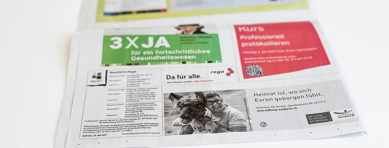 Ist in Ihrer Publikation noch ein Anzeigenplatz frei? Dann finden Sie bei uns mit Sicherheit das passende Sujet. Wir haben unsere Spendeninserate für Zeitungen, Magazine und andere Medien als druckfähiges PDF-Dokument in unterschiedlichen Formaten bereitgestellt.Indem Sie unsere Füllerinserate unentgeltlich publizieren, unterstützen Sie Projekte und Aktivitäten der Stiftung Waldheim, die mit den herkömmlichen Mitteln nicht finanzierbar sind.