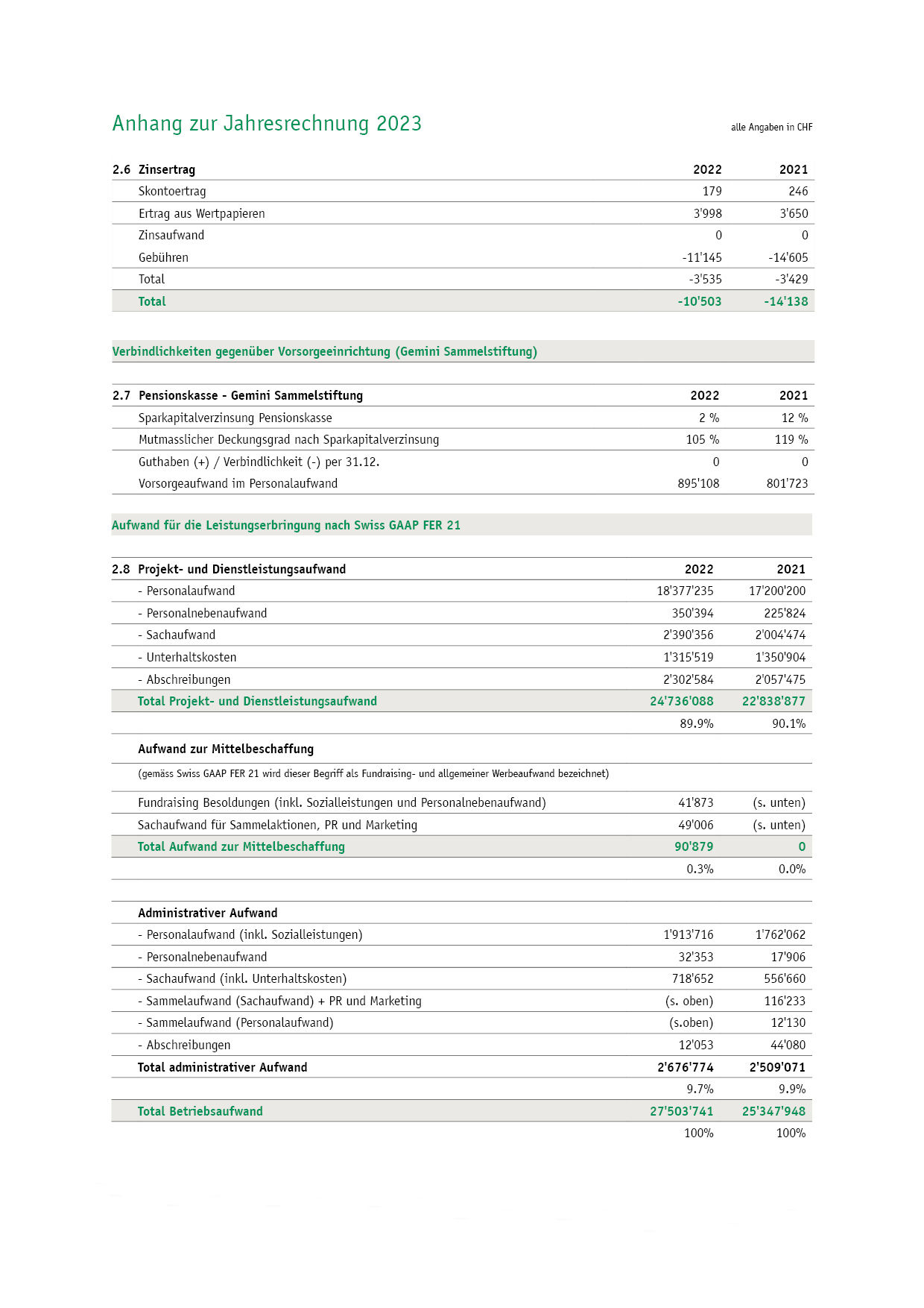 Die Spendeneinnahmen betragen für das gesamte Geschäftsjahr CHF 825’076 und übertreffen damit das Vorjahr um CHF 368’869. Dabei ist zusätzlich anzumerken, dass zwei grössere Legate noch nicht vollumfänglich zur Auszahlung kamen. In der Folge wird die Stiftung Waldheim im Jahr 2024 eine Legateauszahlung über den Betrag von rund einer Million Franken erreichen.