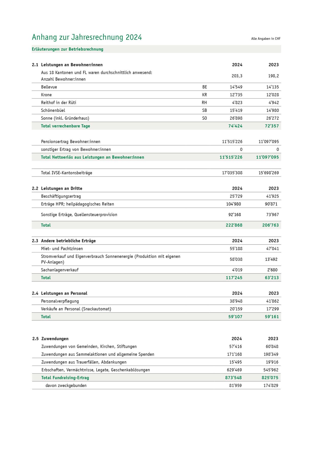 Und zu guter Letzt übersteigen die Spendeneinnahmen und Erbschaften mit insgesamt CHF 873’548 das Vorjahr um CHF 48’472, obwohl mehrere Erbschaften im Jahr 2024 erst teilweise ausbezahlt wurden. Ein grosses Dankeschön gebührt allen Spenderinnen und Spendern sowie all jenen, die in irgendeiner Form zum guten Ergebnisbeigetragen haben.