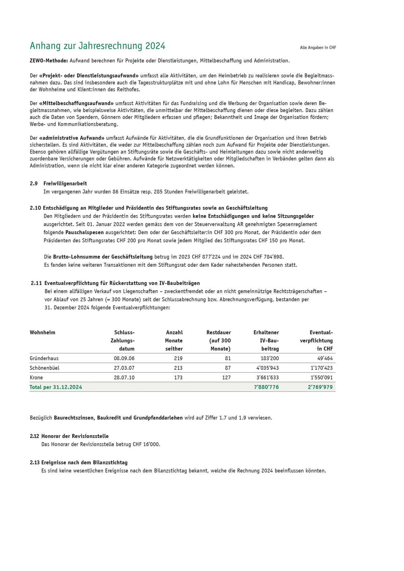 Für den Neubau und die Arealumgestaltung beim Wohnheim Bellevue wurden bis 31.12.2024 total CHF 3,6 Mio. investiert; davon rund 1,1 Mio. 2024.