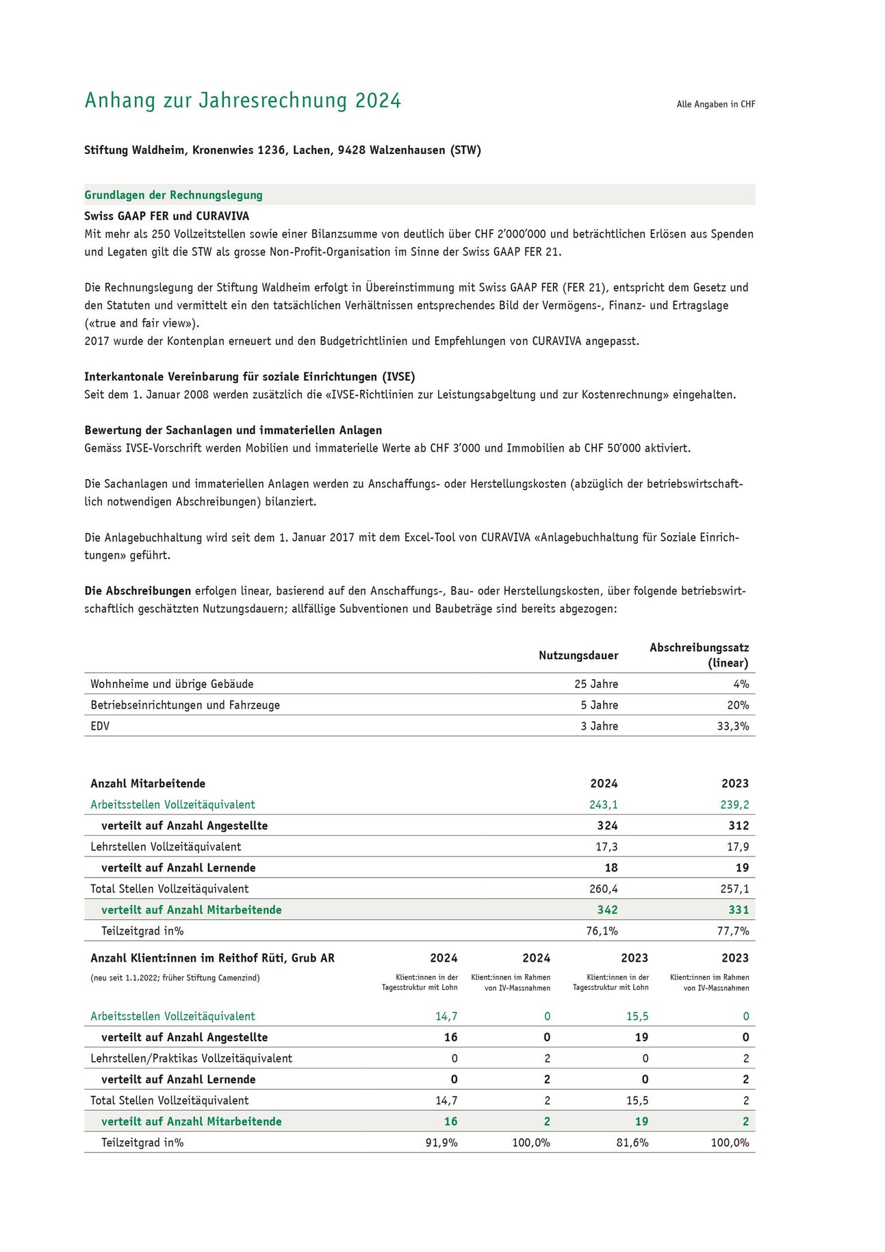 Die Stiftung Waldheim schliesst das Geschäftsjahr 2024 mit einem sehr guten und höchst erfreulichen Betriebsergebnis von CHF 879’633 ab.