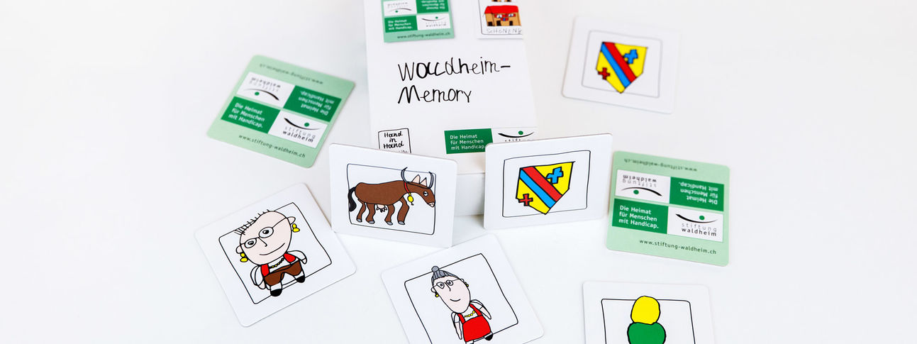 Einige Bewohnerinnen und Bewohner der Stiftung Waldheim haben mit ihren bunten Zeichnungen und Bildern ihr eigenes Kartenset geschaffen. Probieren Sie es einfach aus: Kärtchen per Mausklick umdrehen und die gesuchten Motive entdecken. Das Spiel lässt sich auf allen aktuellen Browsern spielen – viel Vergnügen beim Knobeln.